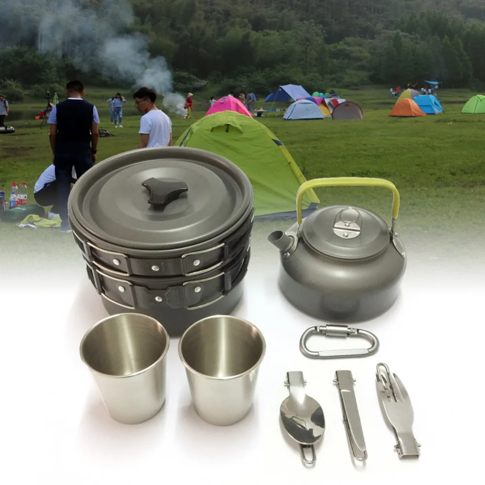 Outdoor Camping Cookware Set Portable Tableware Cooking Travel Cutlery Utensils Pot Pan Hiking Picn